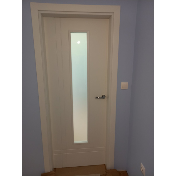 Важи за размер до 210/90см. и каса до 15см., включва стъкло химически мат, крило, каса, уплътнения, прави плаващи первази и обков. Декор по избор.